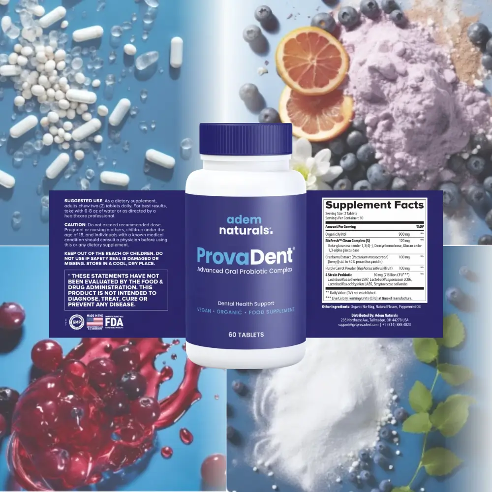 ProvaDent is a natural oral probiotic supplement designed to support complete dental health. It works by balancing the oral microbiome—promoting good bacteria and reducing harmful ones—to help prevent bad breath, cavities, gum issues, and more.